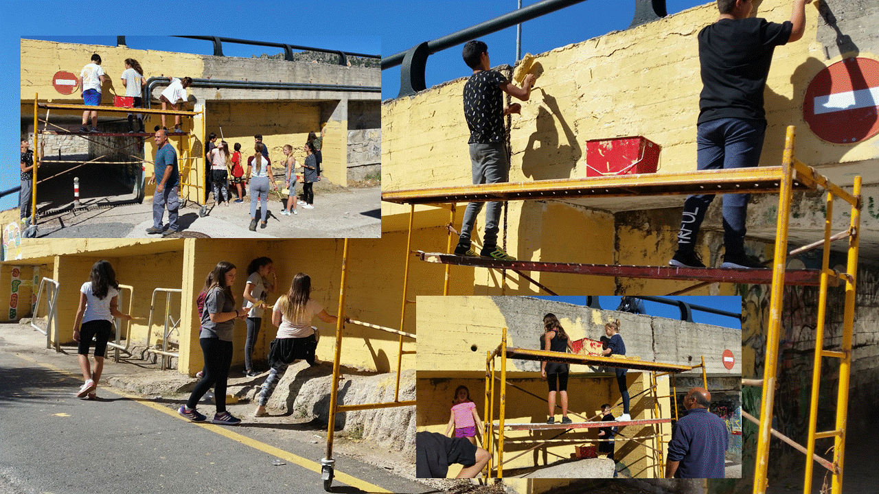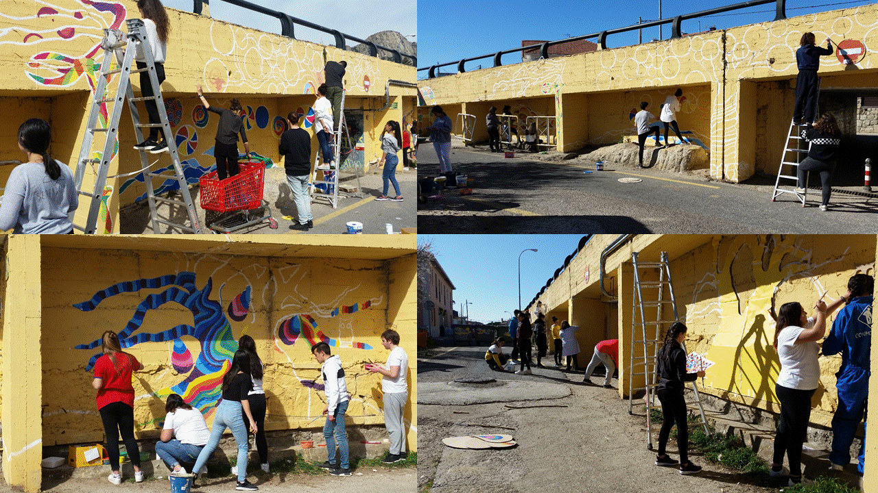 Los alumnos/as tres intervenciones: en el instituto, en el entorno (el túnel de paso bajo la carretera principal de La Cabrera) y en los campos de refugiados saharauis.